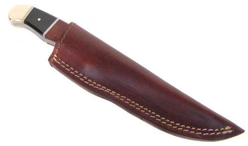 The combination of micarta and bull horn with brass and fiber spacers for the handle is a perfect compliment to the beauty of the blade.