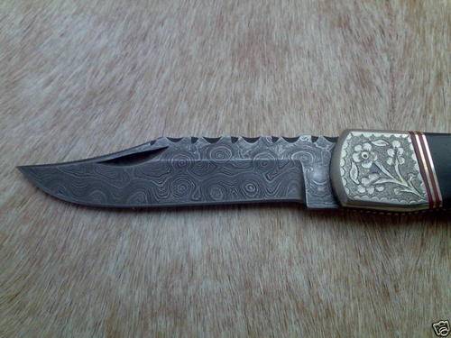 This unique superb design Folding Lock Back Knife is totally handmade. This Knife is a piece of Craftsmanship and Exotic materials. Blade of the knife is hand forged with above 200 Layers of 1095 and 15N20 high carbon tool steels, with Nickel layer. Blade has been given excellent heat treatment to get a 56 to 57 HRC. The blade is razor sharp.
