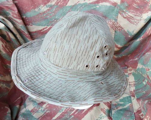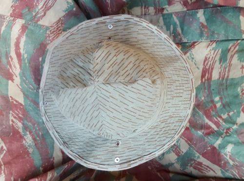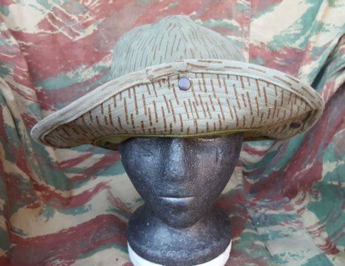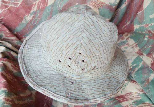 Here on auction we have a custom made once-off "fantacy" piece - an EG falling rain (sewn from a piece of off-cut Recce copy type "D" camo cloth produced in SA) - a "terr" hat based on Russian Afghanka type summer bush-hat (and something that would typically have been knocked-up by a base tailor for pseudo ops in Angola).