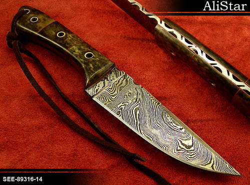 CUSTOM HANDMADE DAMASCUS HUNTING SKINNER KNIFE WITH LEATHER SHEATH