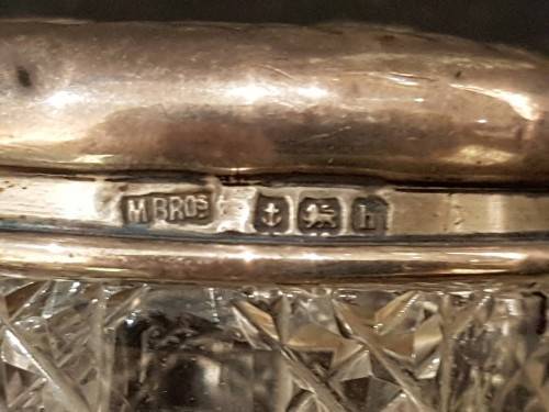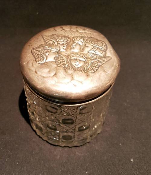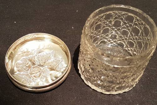 A beautiful cut glass vessel with a silver hallmarked lid. The hallmark is M Bros, Miller Brothers from the 1900's. The lid has a couple of dings. The glass is in good condition. The vessel measures 6.5cm high. This will be a beautiful addition to your collection! Own this beauty, bid now!