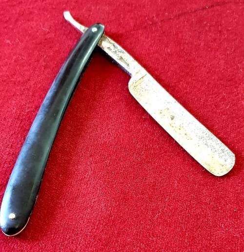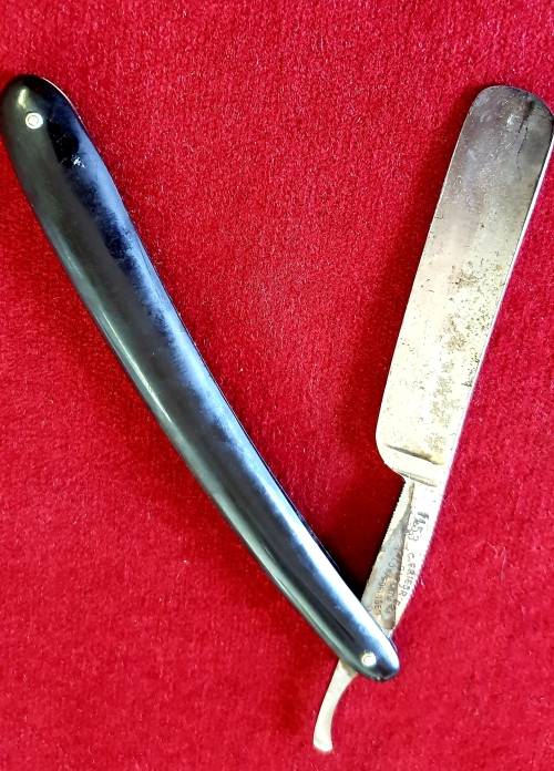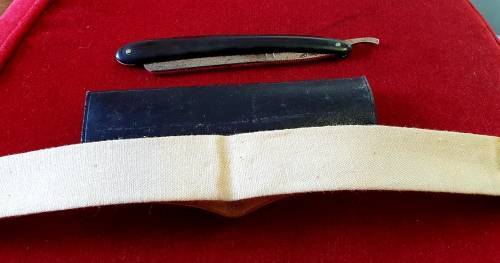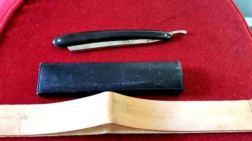 ON AUCTION : 1 X CUT THROAT RAZOR . WITH LEATHER STROP. ORIGINAL BOX. SOLINGEN !! NUMBERED. ANTIQUE TREASURE !!