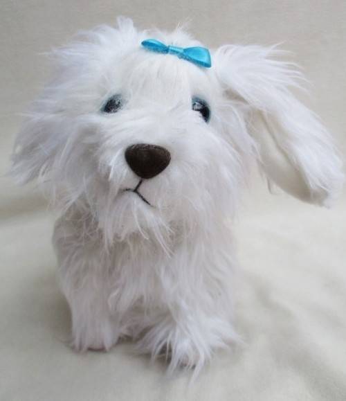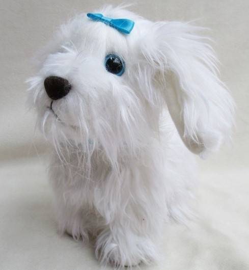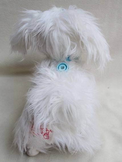 20CM TALL - FLUFFY WITH FIRM BODY - HE USED TO WALK BUT MECHANISM IS NOT WORKING ANYMORE (SOMETHING PLUGGED INTO HIS BACK ) SO JUST DISPLAYS NICELY NOW - CUTE!. REFER IMAGES
