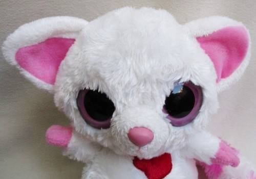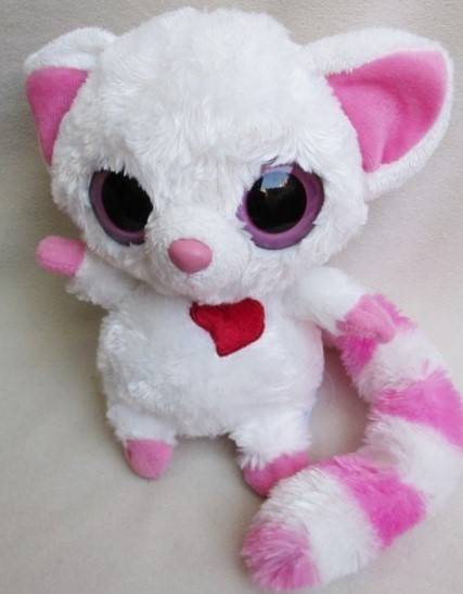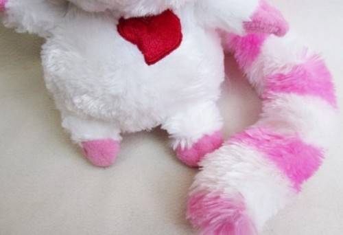 19CM TALL WITH A 23CM LONG TAIL AND IN GREAT CONDITION WITH ORIGINAL AURORA LABEL - PRESS THE RED HEART ON HER CHEST AND IT LIGHTS UP AND SHE MAKE THE SWEETEST CHATTERING SOUNDS - ADORABLE! REFER IMAGES