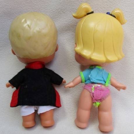 12CM TALL AND JUST TOO CUTE. CHLOE IS DRESSED IN HER ORIGINAL OUTFIT BUT I FOUND CAMERON NAKED AND DRESSED HIM IN WHAT I HAD AVAILABLE. CHLOE HAS A VERY TINY NICK ON HER MIDDLE TOE (LAST IMAGE) OTHER THAN THAT THAT THEY ARE BOTH IN GOOD CONDITION REFER IMAGES