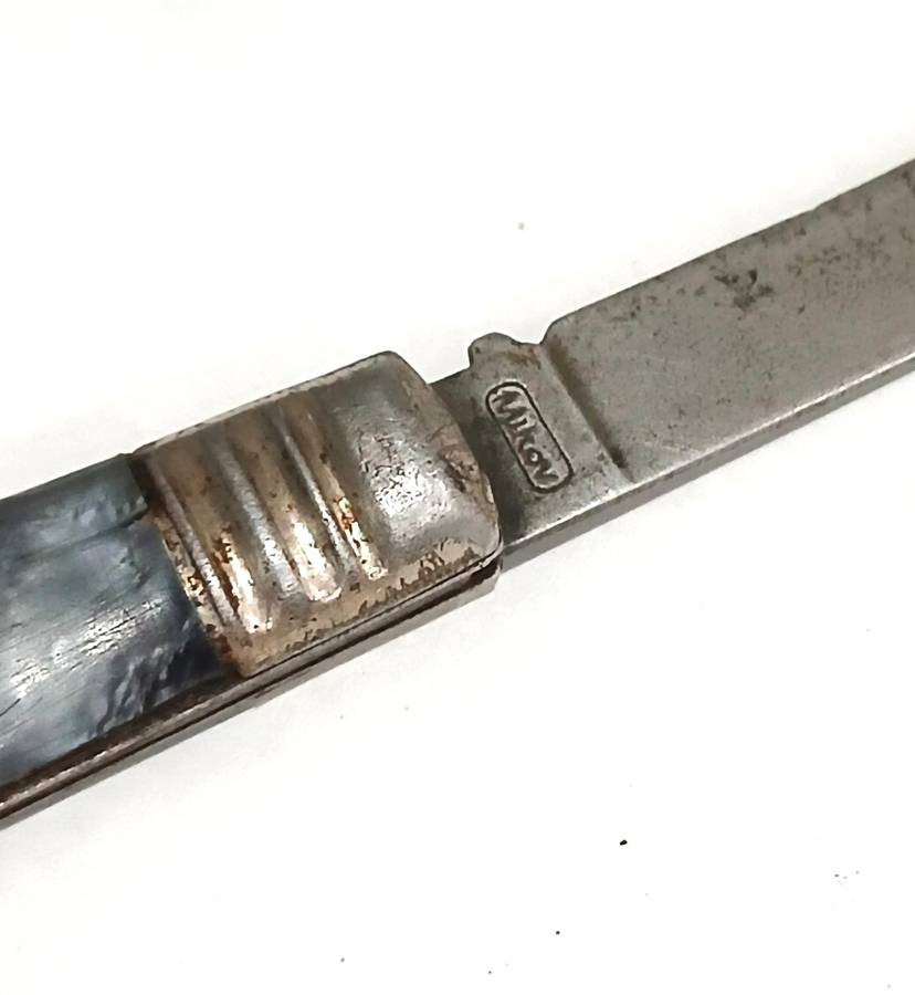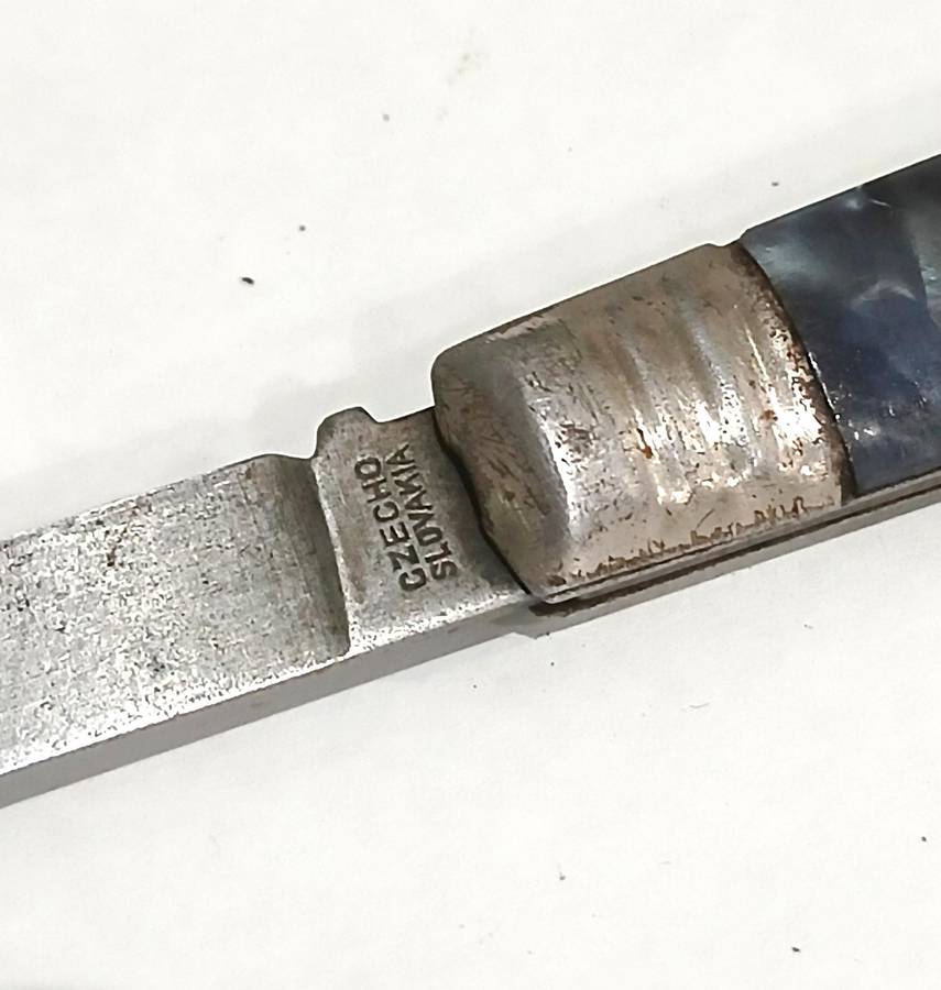 The blade is clearly marked "CZECHOSLOVAKIA," indicating its origin during the period when Czechoslovakia existed as a unified nation (1918-1992). Additionally, the maker's mark "MIKOV" is visible. Mikov is a renowned Czech cutlery manufacturer with a long and rich history, founded in 1794. They became well-known for producing high-quality knives and cutlery, and this piece likely dates from the mid to late 20th century.