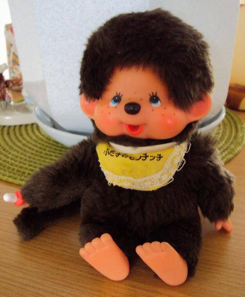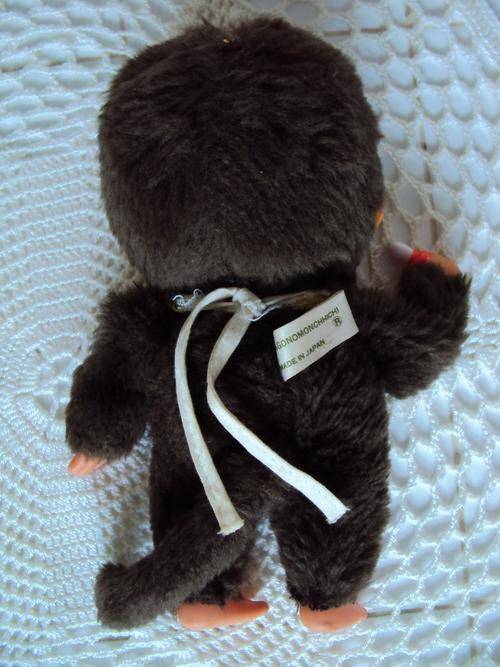 CUTE Collectable Monchichi dummy sucking monkey with bib from 1974 - soooo vintage
