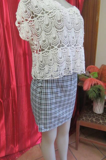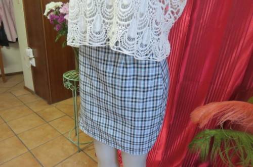 Cute fold over mini skirt in black, white and peach check. Bandless. Size 32/8. Poly/viscose.As new