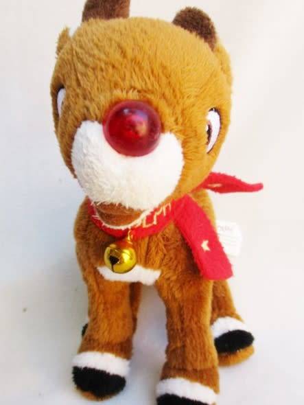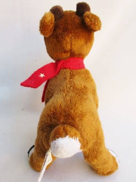 21CM TALL AND IN GOOD CONDITION - PRESS THE MUSICAL NOTES ON HIS SIDE AND HE PLAYS CHRISTMAS DITTIES AND HIS NOSE FLASHES. THE MUSIC IS RATHER SOFT SO NOT SURE IF THE BATTERIES NEED REPLACING OR IF IT IS JUST THAT WAY - HE'S AWFULLY CUTE THOUGH REFER IMAGES