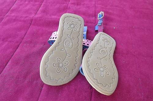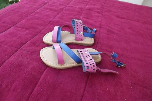 Cute pair of sandals for small girl size 2 by Tiptoes. In pink and blue with ankle straps. New cond.