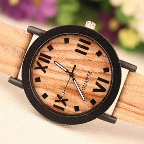 Cute PU Leather Strap Watche Wrist Watch Wood Grain Pattern Retro
