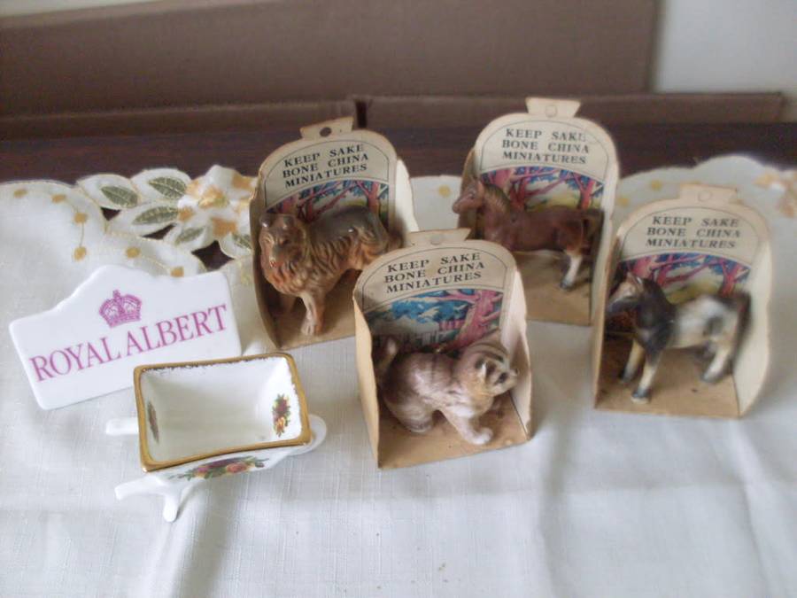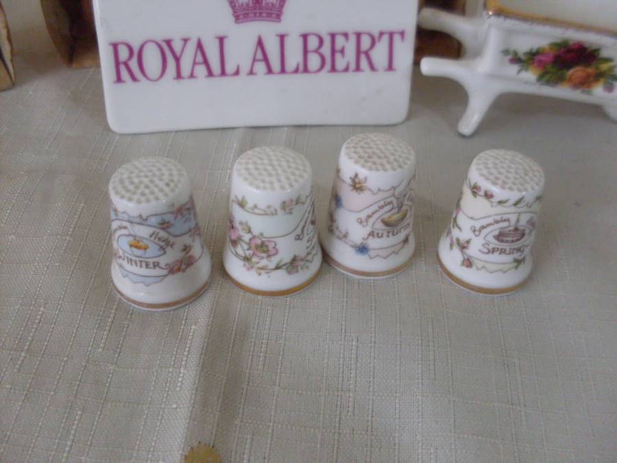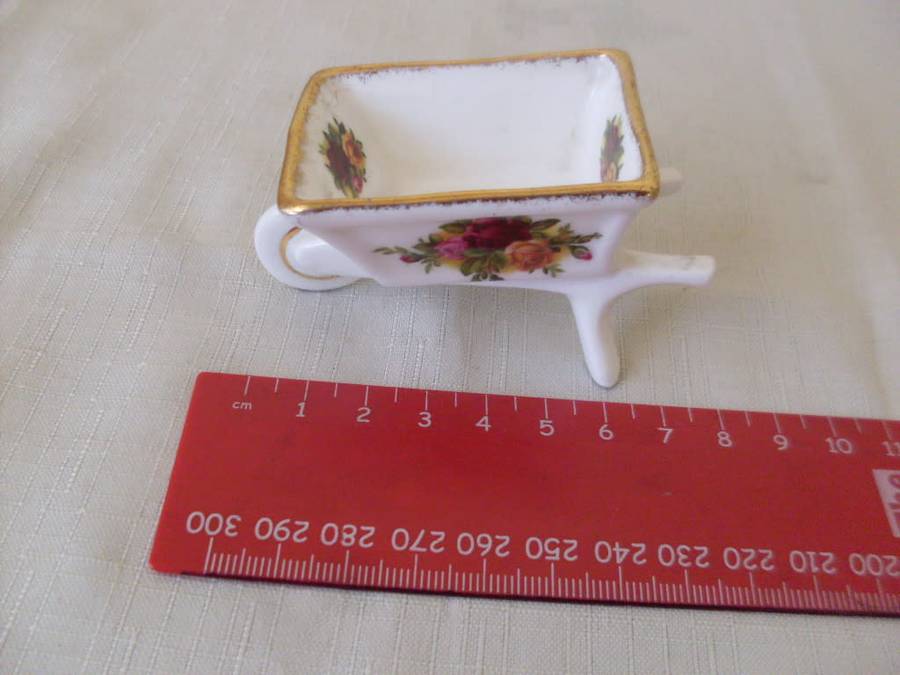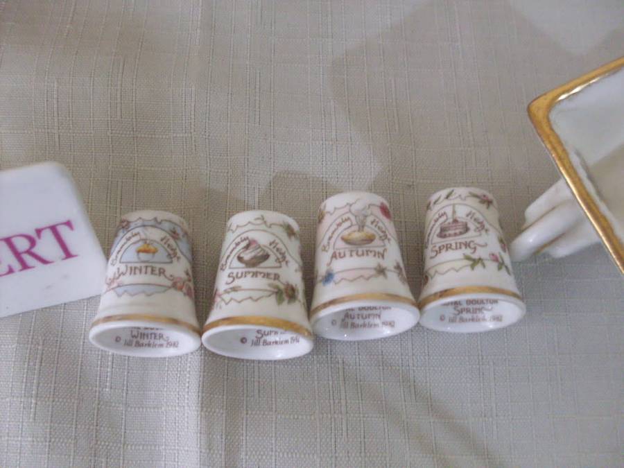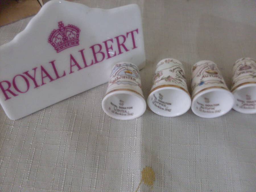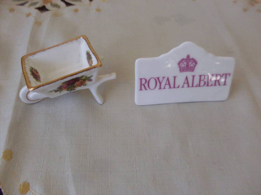 CUTE ROYAL ALBERT PORCELAIN WHEELBARROW/ DISPLAY NAME PLAQUE +ROYAL DOULTON 4 SEASONS THIMBLES