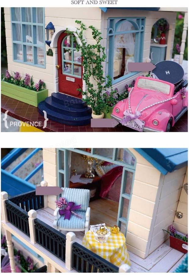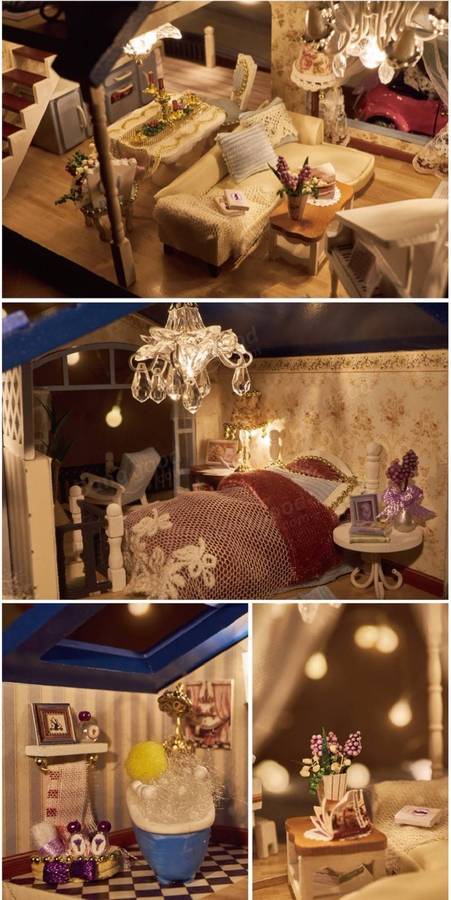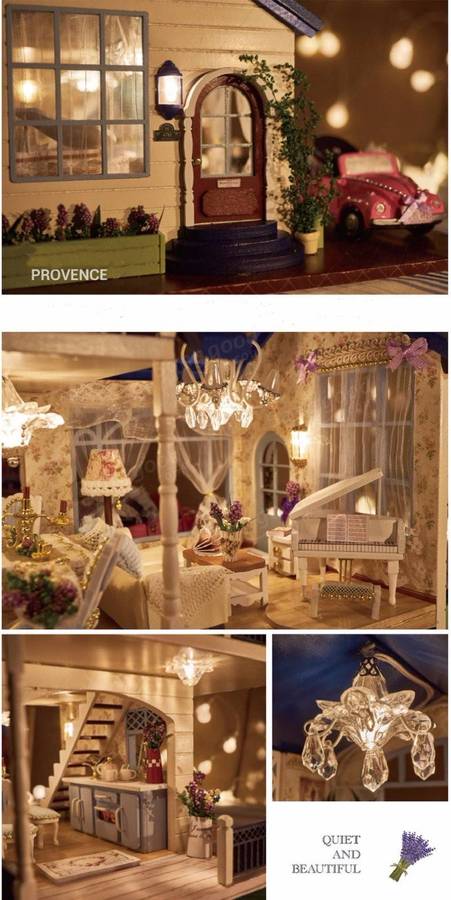 Cuteroom 1:24DIY Handcraft Miniature Voice-activated LED Light&Music with Cover Provence Dollhouse