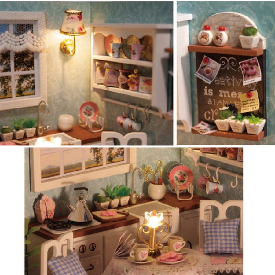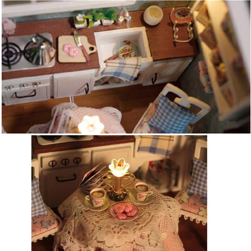 Cuteroom Dollhouse Miniature Dining Room DIY Kit With Cover And LED