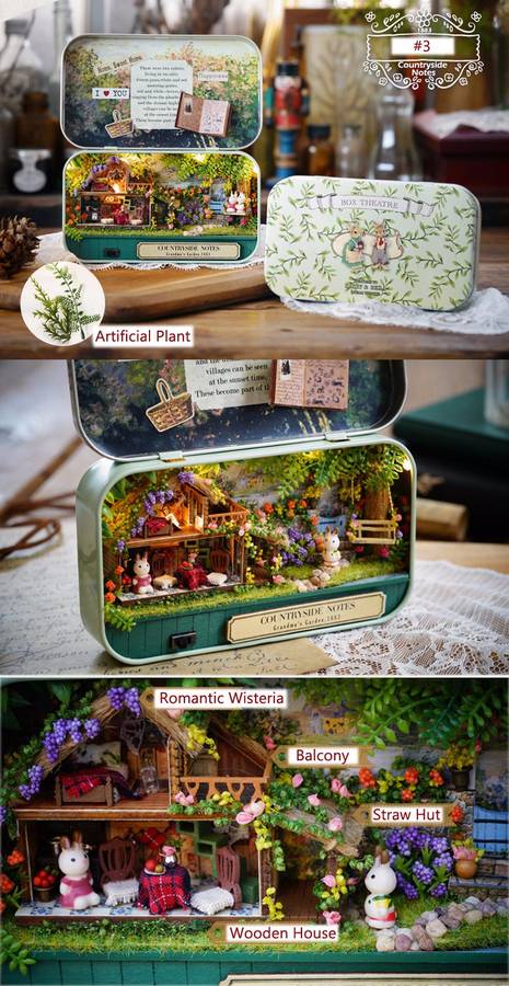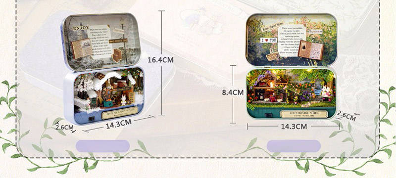 Type : Non - finished Product ( should assemble by youself ) Material : plastic + resin + wood + cloth + paper + LED Size : Open Size : 16.4cm x 14.3cm x 2.6cm Close Size : 14.3cm x 8.4cm x 2.6cm Style : #1 : Wandering Through Winter #2 : Happiness around the corner #3 : Rural's note