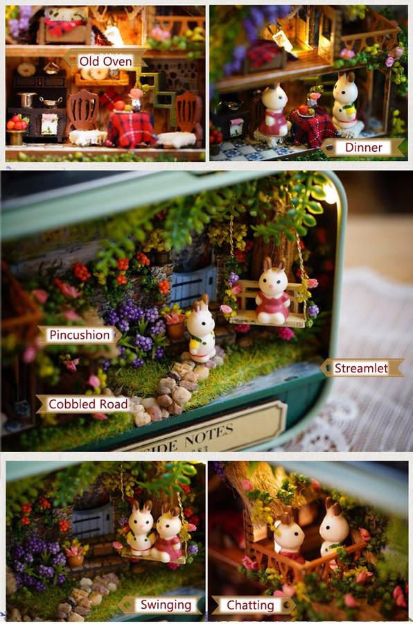 DIY Handwork Assembly Retro Tin Box Cute Room Old Time Cottage With LED Home Decor Gift