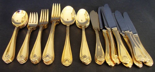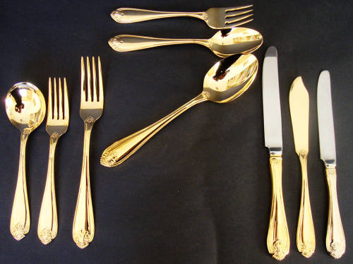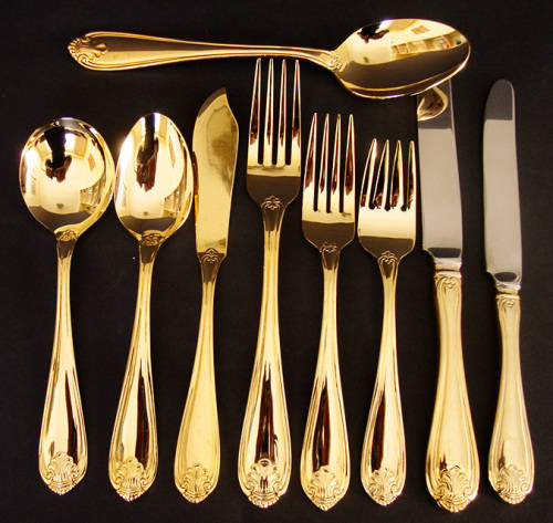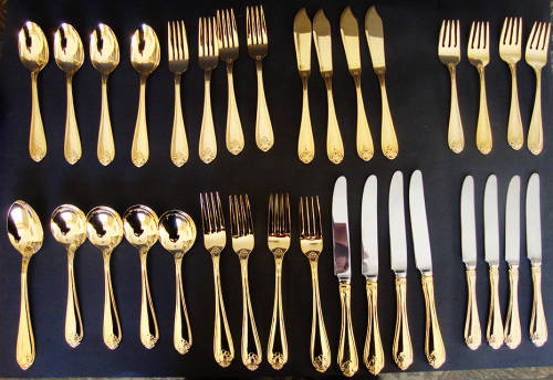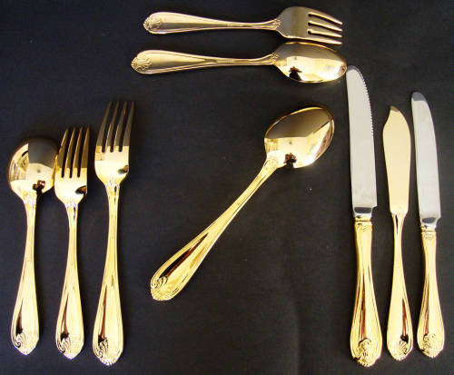 CUTLERY SET 33 PIECE 4 PLACE SETTING "TABLE CLASSICS" GILT/GOLD METAL - KINGS PATTERN
