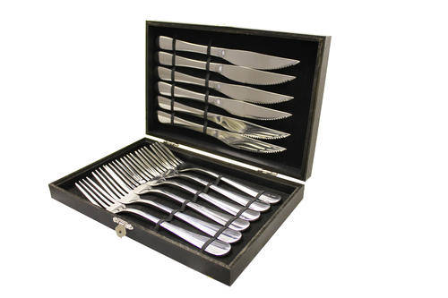 The 12 piece Steak Knife & Fork set features stainless steel with a mirror polished finish.