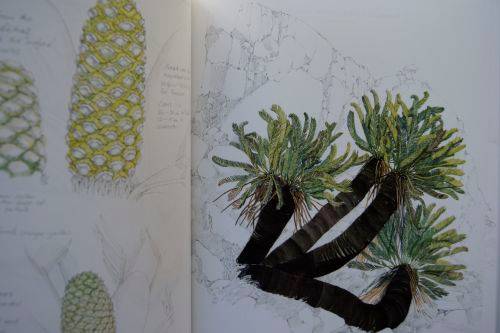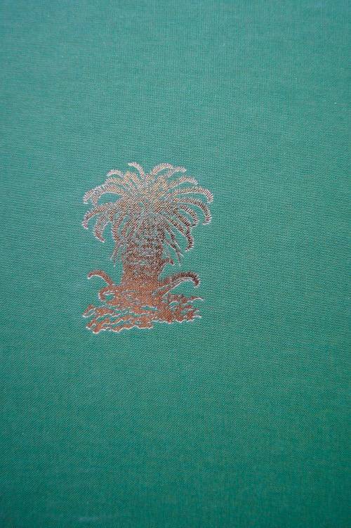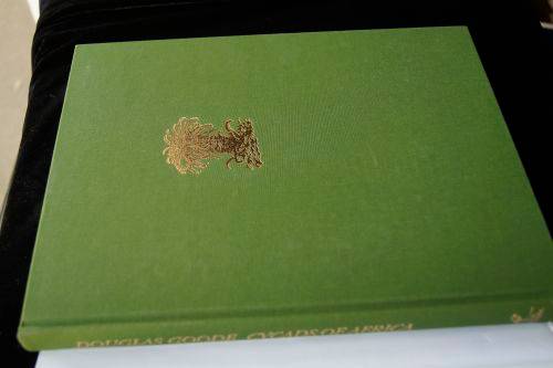 This is one of the copies with the green cloth binding and the gilt embossed cycad design on the front board. This copy still has the original slip case.