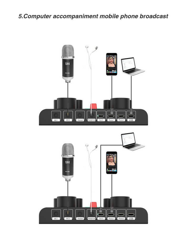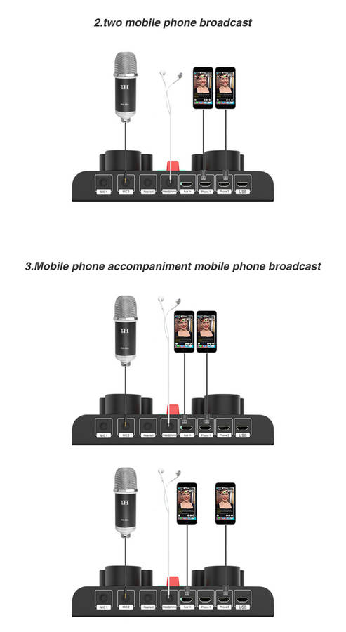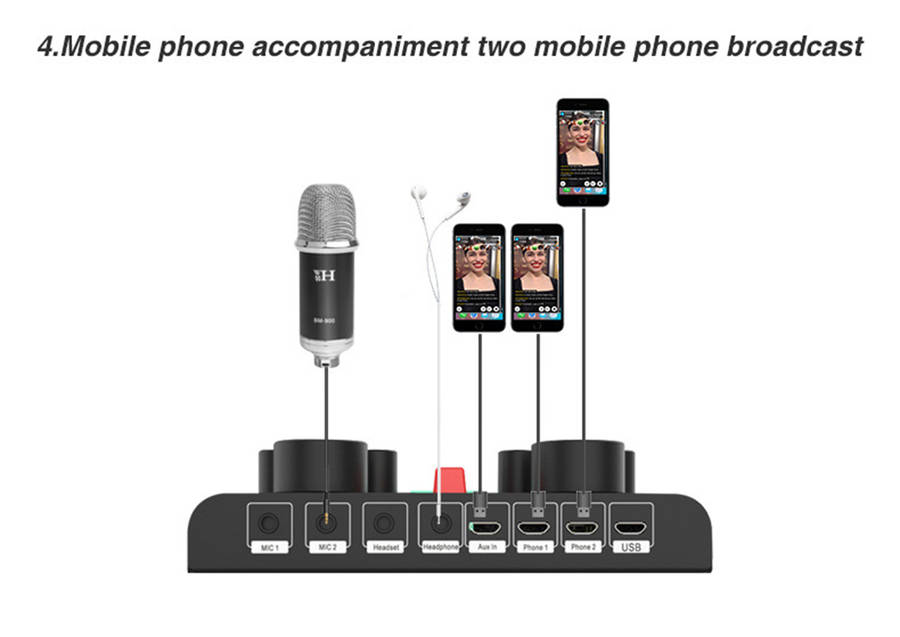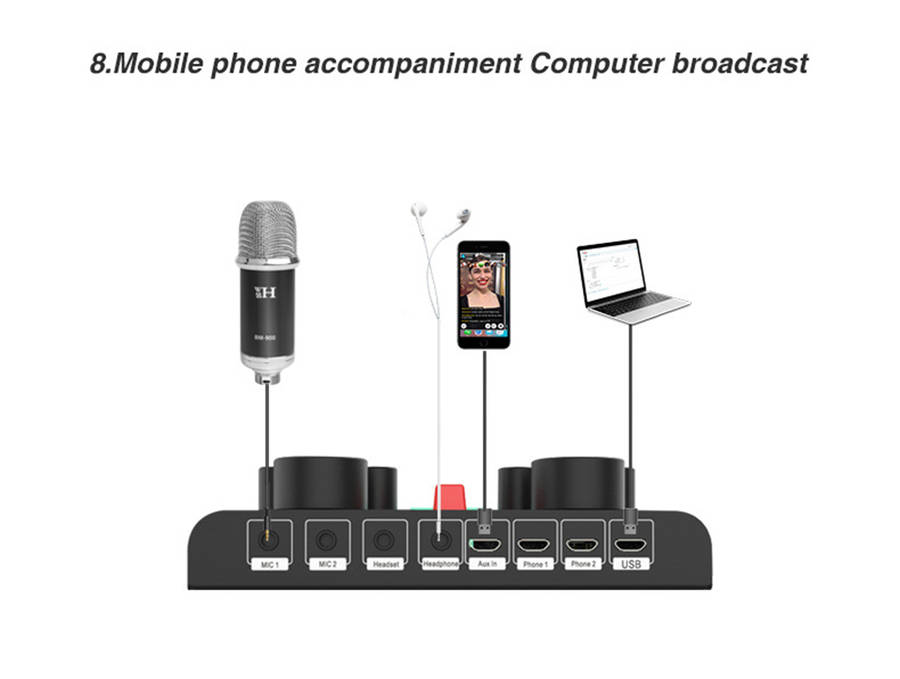 Includes multiple input ports: Two microphones, two mobile phones, two headsets and PC can be connected, and Bluetooth connection is supported