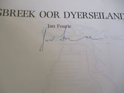 Geteken deur skrywer, Jan Fourie.