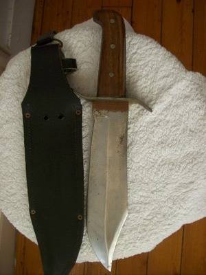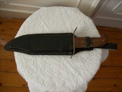 Large dagger/knife in a leather sheath. The dagger has a broad blade which is 250mm long and marked Pakistan on it, the whole knife is 380mm long, very heavy.I do not know much more about it. i.e origins and use.