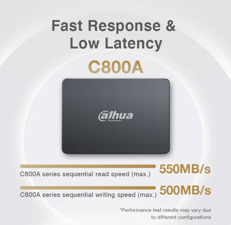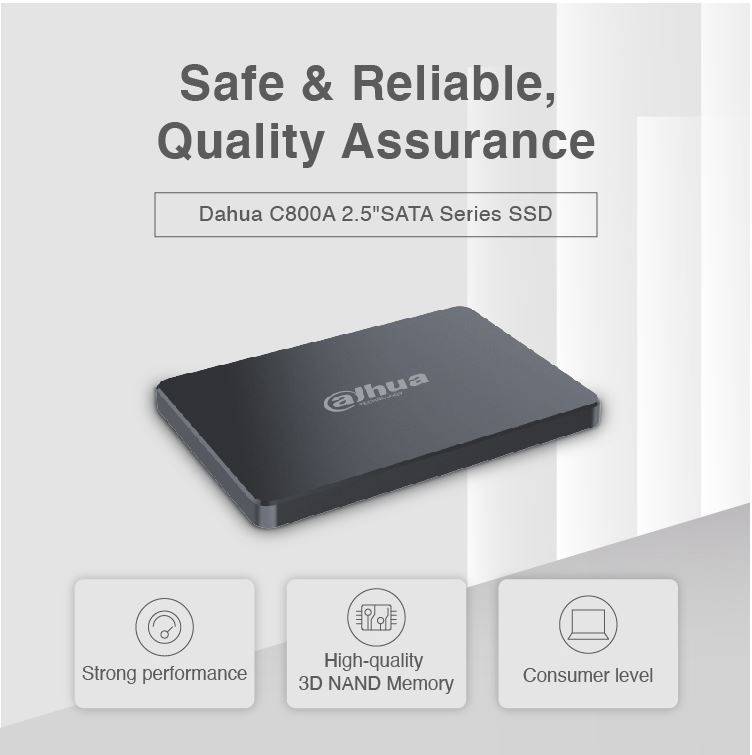 As a new generation of 2.5" SSD product launched by Dahua, Dahua 512GB 2.5" SATA III SSD series adopts high-quality 3D wafer level chip and high-performance controller. It is consumer-grade solid state drive designed for personal desktops and notebooks. The product can process data efficiently and ensure quick start-ups. In multi-tasking, it can ensure high speed and stability.