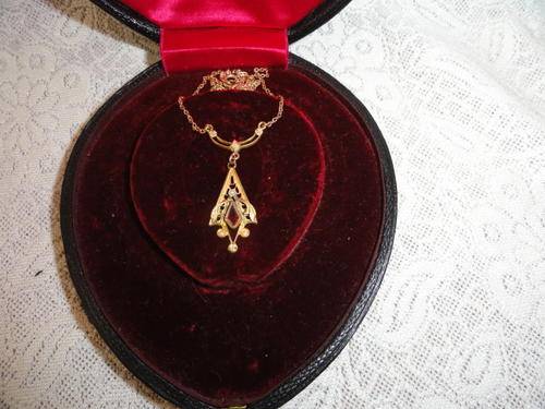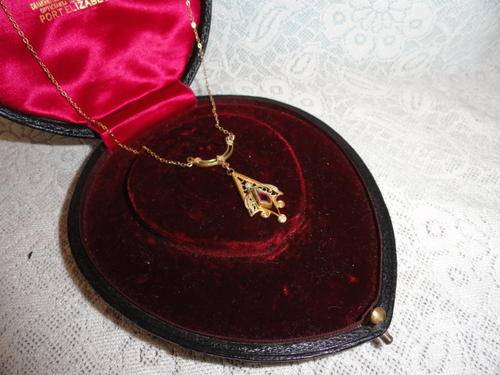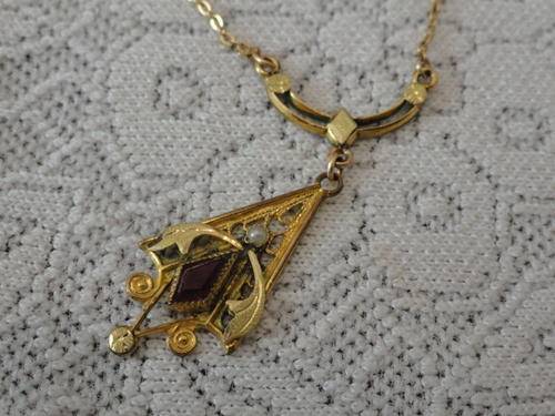DAINTY VICTORIAN FAUX RUBY AND SEED PEARL NECKLACE