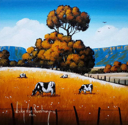 Dairy Farm - ORIGINAL NICKY VAN RENSBURG PAINTING 300 x 300 MM (Value R3000)