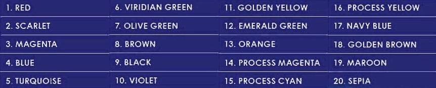 PLEASE QUOTE THE COLOURS YOU REQUIRE WHEN ORDERING.