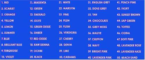 PLEASE QUOTE THE COLOURS YOU REQUIRE WHEN ORDERING.
