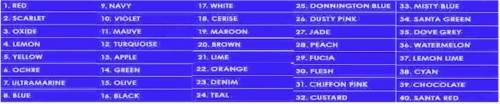 PLEASE QUOTE THE COLOURS YOU REQUIRE WHEN ORDERING.