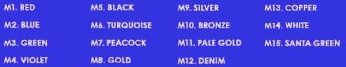 PLEASE QUOTE THE COLOURS YOU REQUIRE WHEN ORDERING.