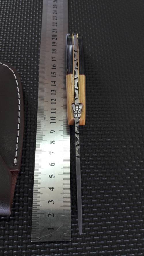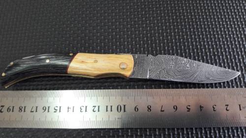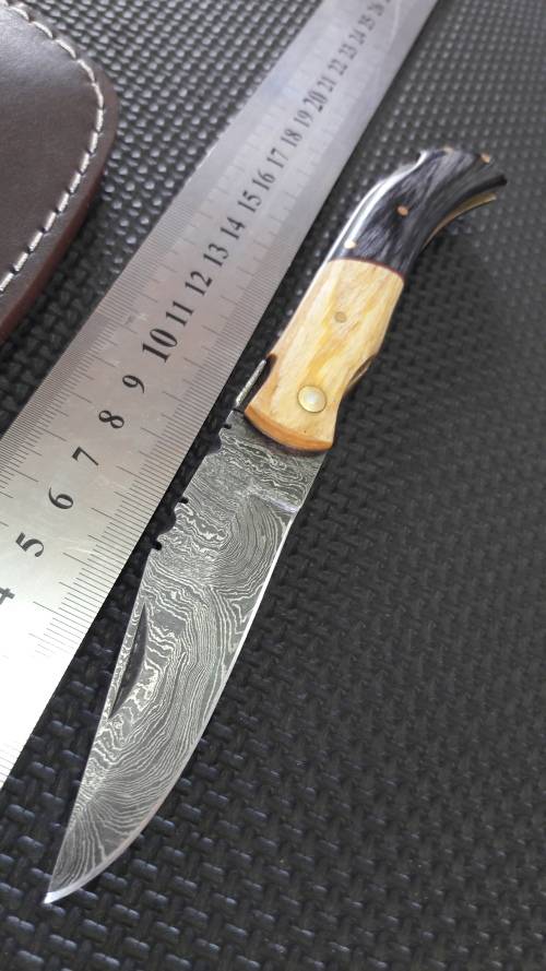 DAMASCUS Hand made Folding knife, BACK LOCK Knife !! 1 Available. leather pouch included.