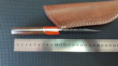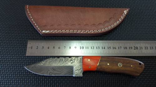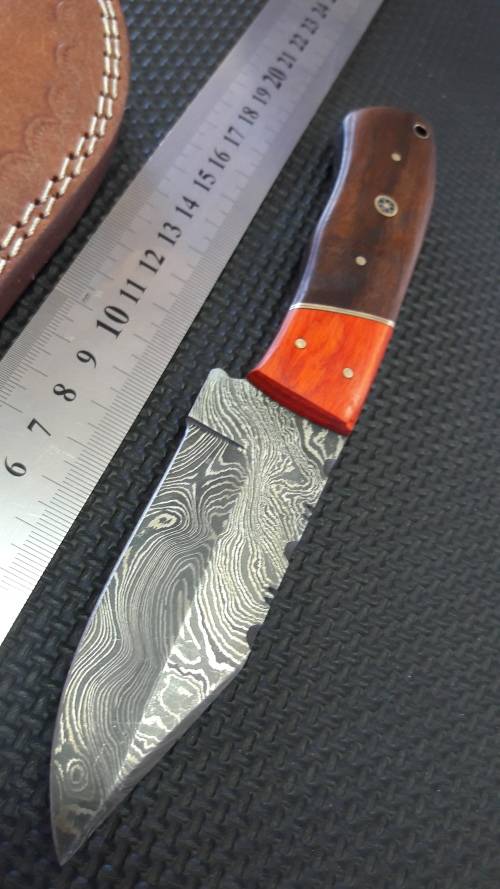 DAMASCUS Hand made Hunting knife with wooden handle scales.