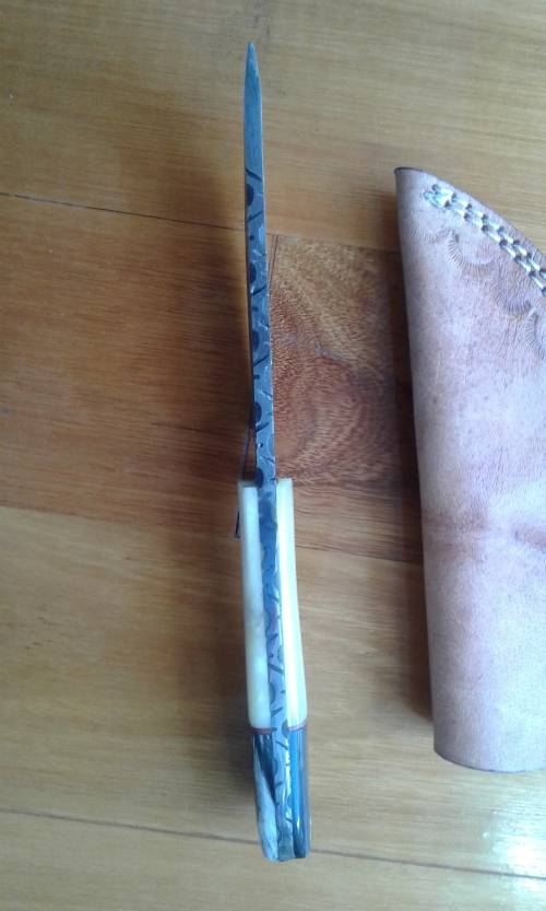 DAMASCUS Hand made knife, a must for any knife collector, Great gift, Leather Sheath Incl.