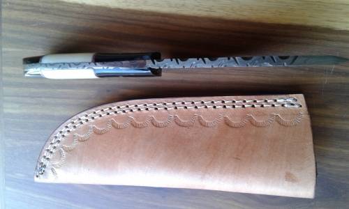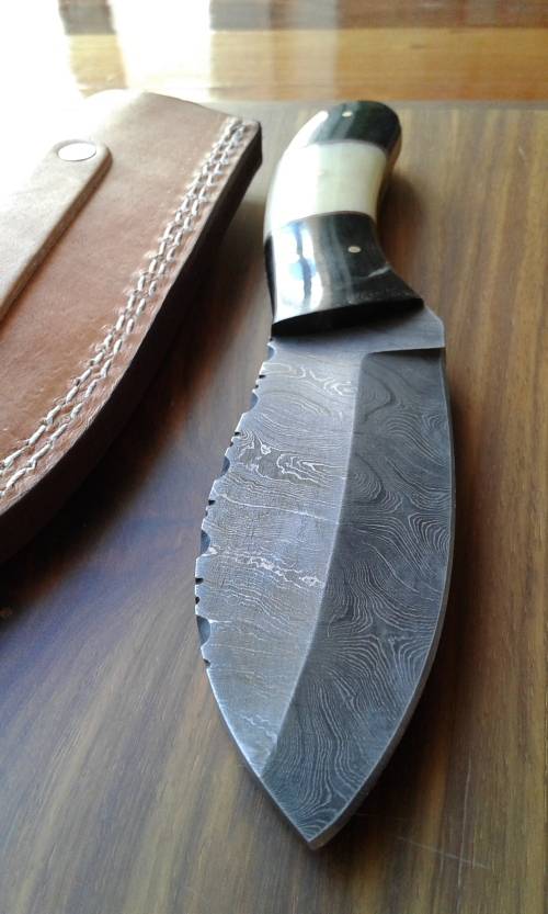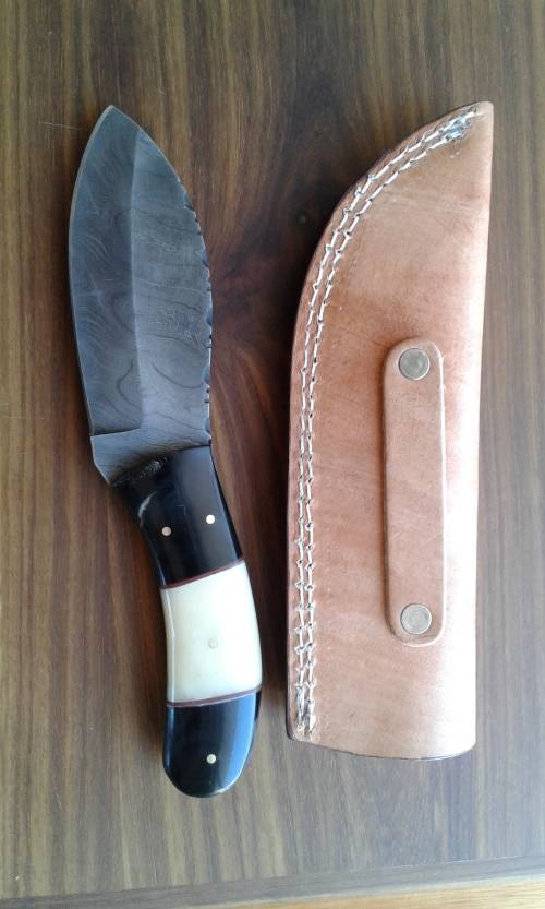 Camel bone and bull horn handle. FREE gift to the winner of this HAND MADE Damascus knife.