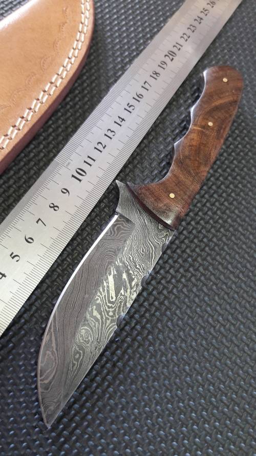 HAND MADE Damascus steel Hunting knife. Leather sheath included.