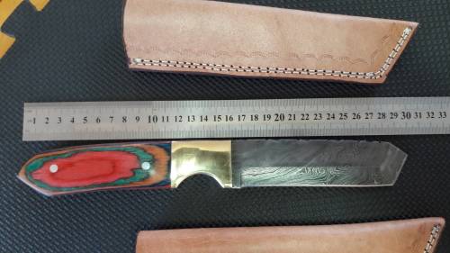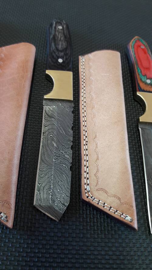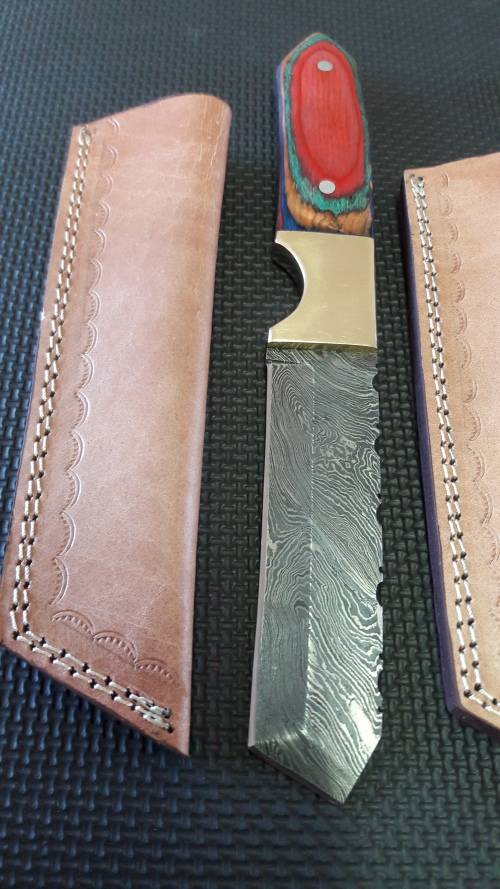 DAMASCUS Hand Made TANTO design, 30cm long, leather sheath included. 4 Available, Per per Tanto.