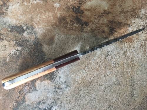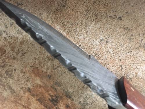 Our Damascus steel knives are made from a combination of 1075 high carbon steel and 4340 or 15N20 high nickel steel. Damascus steel patterns vary.
