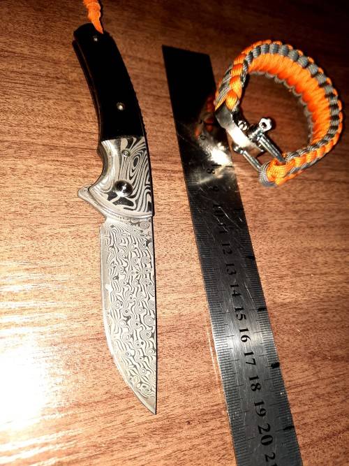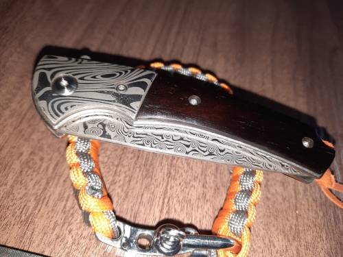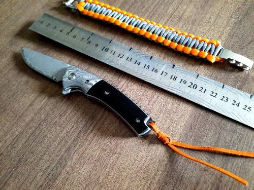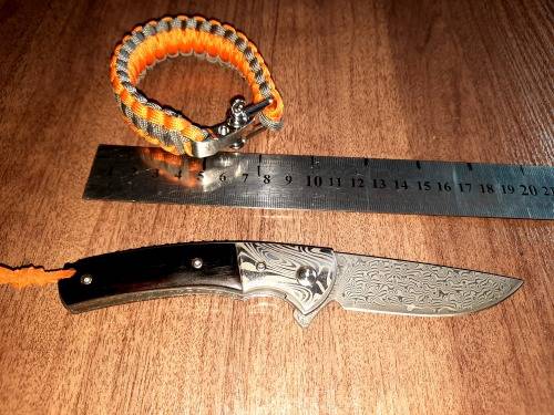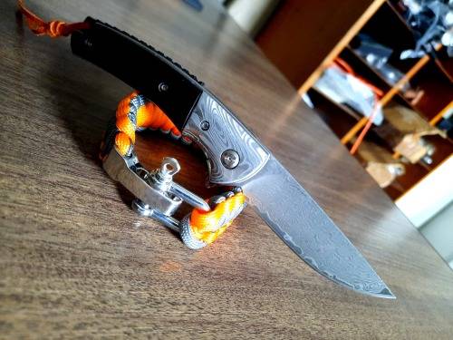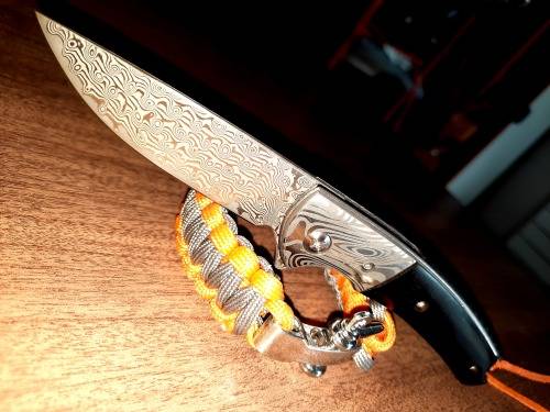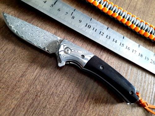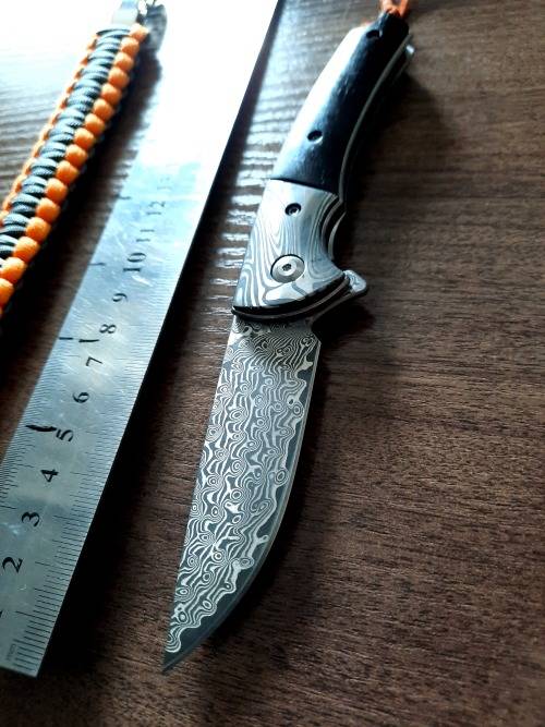 These are top quality Damascus stainless steel folding knives with EBONY WOOD handle scales.