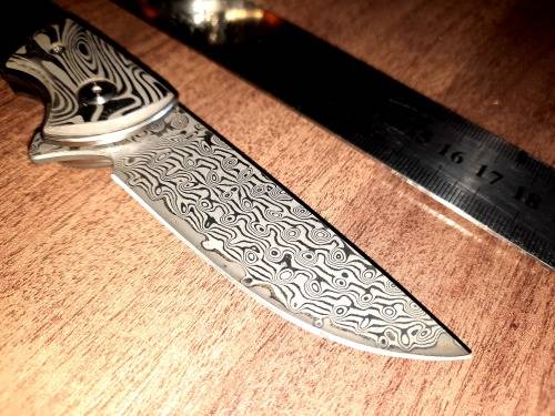 HIGH Quality Stainless DAMASCUS Steel BLADE with EBONY handle scales. Bolster engraved.
