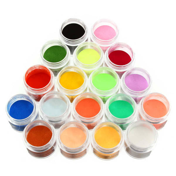 Features: 1. The set contains totally 12, 18, 24 different colors. 2. Just add powder to whatever you are using either gel or acrylic. 3. These colors may be used to make 3D nail art or mixed with glitters or overlaid with shell, opal flakes for outstanding results. 4. They can be used on natural or false nail tips. 5. Clean the surface of your nails, brush the base polish, place it onto nails. 6. Suitable for both professional use and personal use.