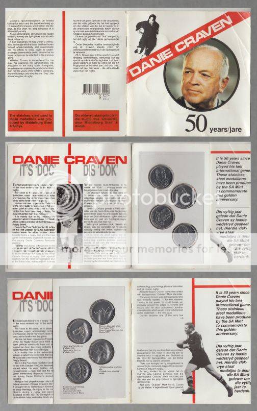 Danie Craven (Mr Rugby) Set of Four Medallions in Commemorative Booklet