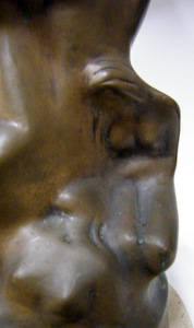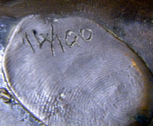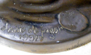 The sculpture stands on what looks like a marble stand and with stand it is 32cm high, the base has a diameter of 22cm and it weighs a sturdy 9.3kg. It is signed on the back, dated 1992, numbered (14/100) and interestingly it appears to be finger printed as well just below the numbers. The sculpture is in excellent condition, I can find no blemish or fault with it and this will certainly be a fabulous addition to any valuable art collection.
