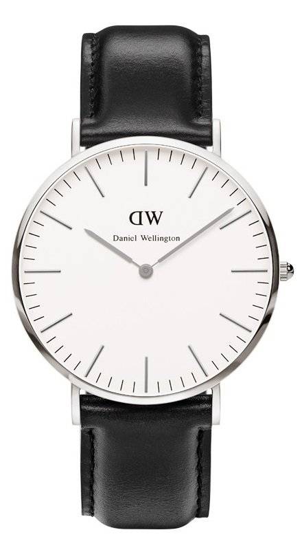 This slim-line gents Daniel Wellington Sheffield Silver 40mm watch has a stainless steel case and is fitted with an analogue quartz movement.