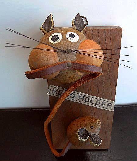 DANISH DESIGN WOODEN/MAGNETIC MEMO HOLDER " CAT AND MOUSE" CA 1950/60's