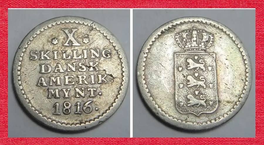 Danish West Indies, Silver 10 Skilling of 1816 (Scarce)