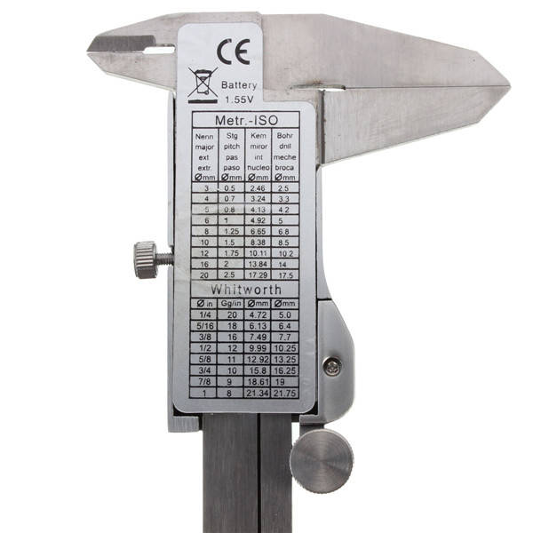 150mm 6 inch LCD Digital Caliper Stainless Electronic Vernier GuageMicrometer Features : Aluminium alloy head. full body ismade of hardened stainless steel. Strong stainless steel frame. Extra Large easy to read digital LCD display. Metric conversion & zero buttons. Measures inside, outside and depth from