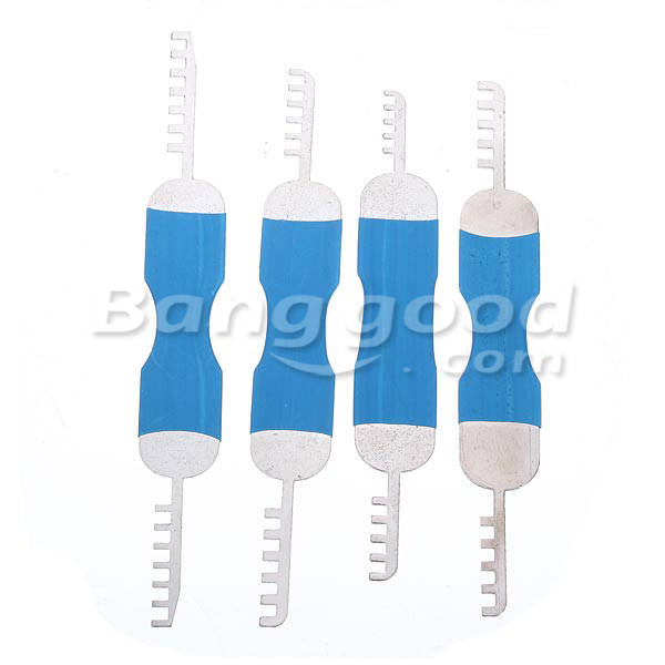 Package weight: 0.03 kg Description : 4Pcs Double Sided Padlock Picks Door Lock Opener Locksmith Tool There’re 4 in a set. Including 3 specs : 5 pins, 6 pins and 7 pins. This pick can be used to open padlock rapidly,just like a using a key to open lock. Package included : 4 x Double Sided Padlock Picks Details pictures :